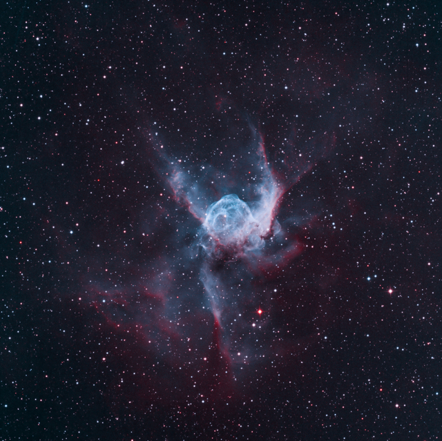 This is NGC 2359 (AKA Thor's Helmet). This is an emission nebula (I.e. a cloud of gas energized by a bright star at its center) located about 12 thousand light years away in the Constellation Canis Major (Big Dog). Well, what do you think? Does it look like Thor's helmet?